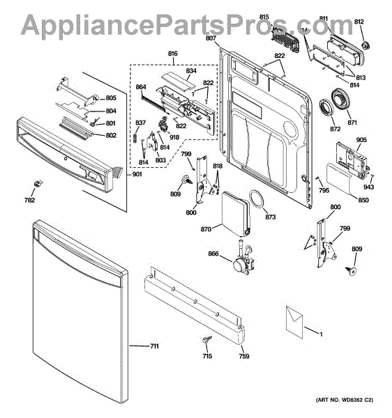 Parts for Ge PDWF680R10SS: 01 - Escutcheon & Door Assembly Parts