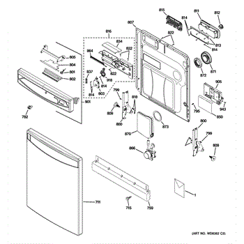 The Detergent and Rinse Aid Dispenser is an OEM part for GE dishwashers. It is responsible for holding and releasing detergent and rinse aid during the dishwashing cycle, ensuring that dishes are cleaned and rinsed effectively.