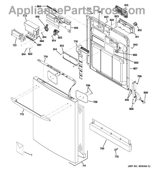 The Detergent and Rinse Aid Dispenser is an OEM part for GE dishwashers. It is responsible for holding and releasing detergent and rinse aid during the dishwashing cycle, ensuring that dishes are cleaned and rinsed effectively.