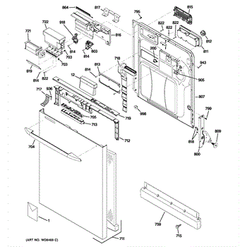 The Detergent and Rinse Aid Dispenser is an OEM part for GE dishwashers. It is responsible for holding and releasing detergent and rinse aid during the dishwashing cycle, ensuring that dishes are cleaned and rinsed effectively.