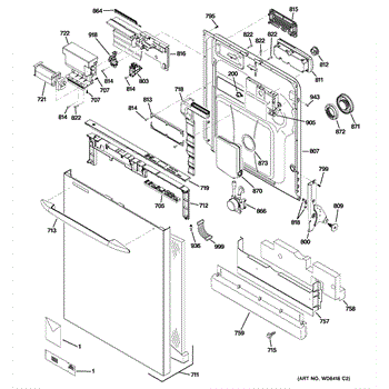 The Detergent and Rinse Aid Dispenser is an OEM part for GE dishwashers. It is responsible for holding and releasing detergent and rinse aid during the dishwashing cycle, ensuring that dishes are cleaned and rinsed effectively.