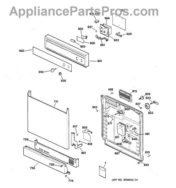 The Soap Dispenser Lever is an OEM part for GE dishwashers. It operates the soap dispenser door, releasing detergent into the dishwasher at the appropriate time during the wash cycle. This lever ensures that detergent is dispensed efficiently for optimal cleaning performance.