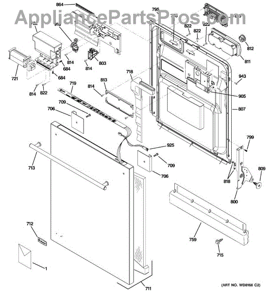 The Detergent and Rinse Aid Dispenser is an OEM part for GE dishwashers. It is responsible for holding and releasing detergent and rinse aid during the dishwashing cycle, ensuring that dishes are cleaned and rinsed effectively.