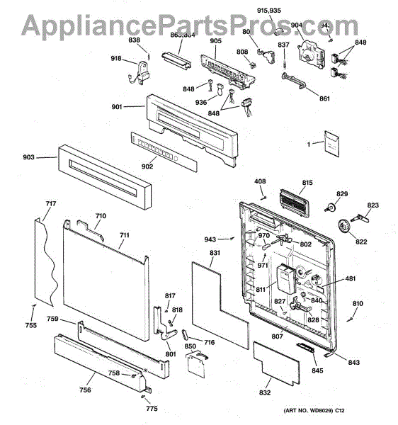 Parts for Ge ZBD4500D01SS: 01 - Escutcheon & Door Assembly Parts