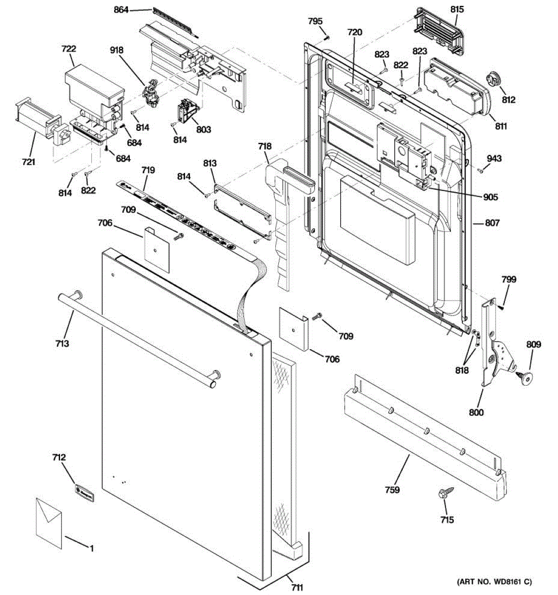 The Detergent and Rinse Aid Dispenser is an OEM part for GE dishwashers. It is responsible for holding and releasing detergent and rinse aid during the dishwashing cycle, ensuring that dishes are cleaned and rinsed effectively.
