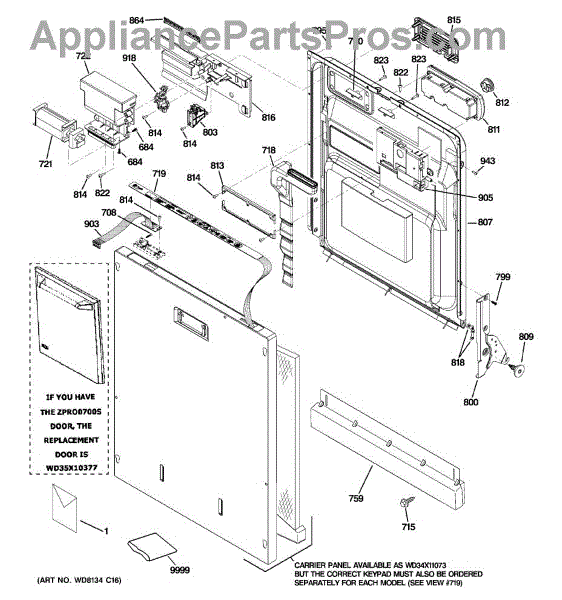 The Detergent and Rinse Aid Dispenser is an OEM part for GE dishwashers. It is responsible for holding and releasing detergent and rinse aid during the dishwashing cycle, ensuring that dishes are cleaned and rinsed effectively.