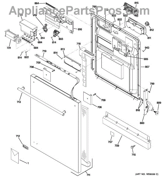 The Detergent and Rinse Aid Dispenser is an OEM part for GE dishwashers. It is responsible for holding and releasing detergent and rinse aid during the dishwashing cycle, ensuring that dishes are cleaned and rinsed effectively.