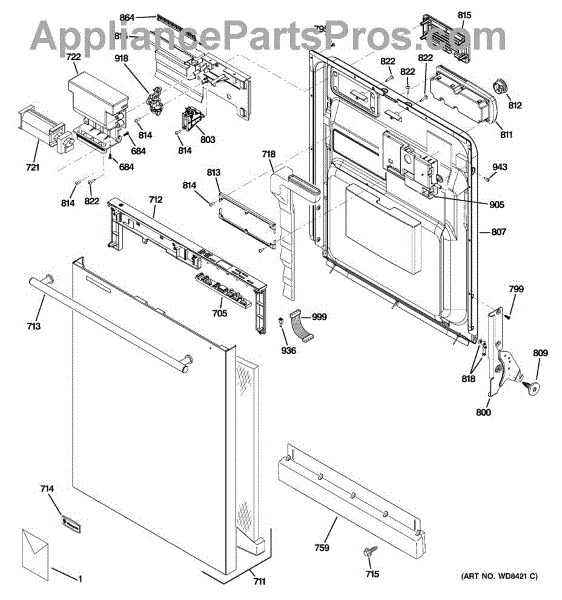 The Detergent and Rinse Aid Dispenser is an OEM part for GE dishwashers. It is responsible for holding and releasing detergent and rinse aid during the dishwashing cycle, ensuring that dishes are cleaned and rinsed effectively.