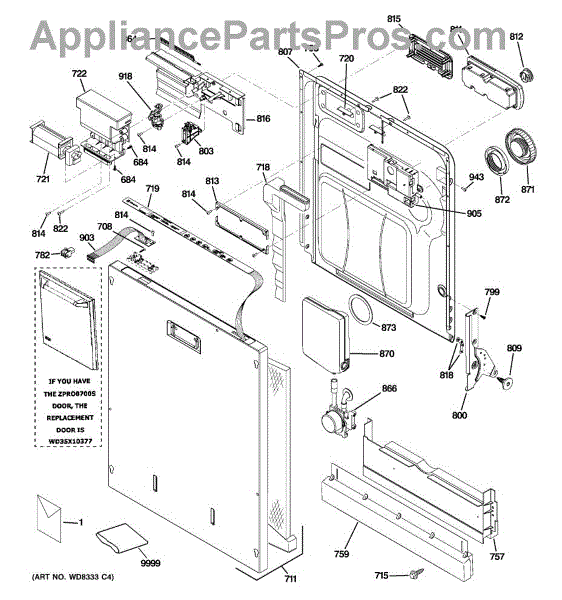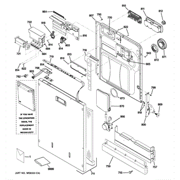 The Detergent and Rinse Aid Dispenser is an OEM part for GE dishwashers. It is responsible for holding and releasing detergent and rinse aid during the dishwashing cycle, ensuring that dishes are cleaned and rinsed effectively.