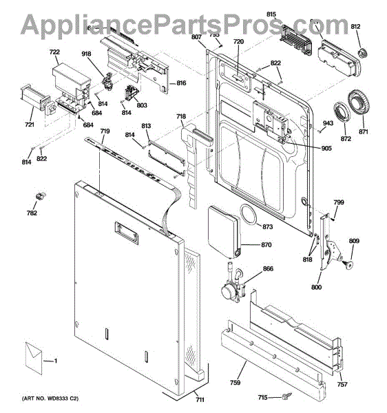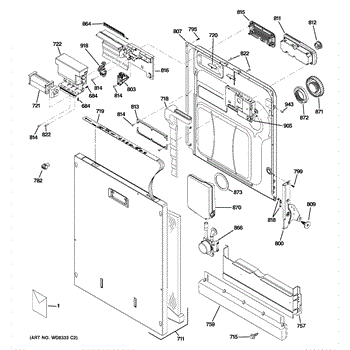 The Detergent and Rinse Aid Dispenser is an OEM part for GE dishwashers. It is responsible for holding and releasing detergent and rinse aid during the dishwashing cycle, ensuring that dishes are cleaned and rinsed effectively.