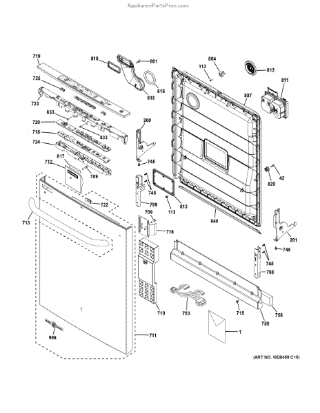 The Door Harness Assembly is an OEM replacement part for GE dishwashers. It is an integral wiring component that connects modules on the dishwasher door to the main control board. These include interactive elements like the latch, temperature probe, and door switch. Causes of failure can include cracked insulation, loose or severed connections, and pinched/chafed wires from repeated bending. Symptoms of a bad door harness include: