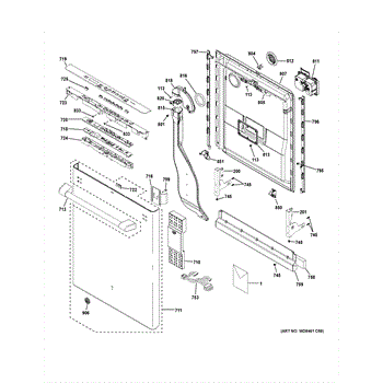 The Inner Door Panel is an OEM part for GE dishwashers. It serves as the inner lining of the dishwasher door, ensuring a watertight seal and supporting components like the detergent dispenser and vent assembly.