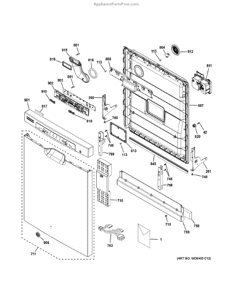 The Door Vent Seal is an OEM part for GE dishwashers. Located within the front dishwasher door, it functions to control moist air circulation and maintain humidity levels inside the wash chamber. Causes of a bad door vent seal can include cracking of the flexible seal material. Mineral or soap deposits may also compromise sealing integrity. Symptoms of a bad vent seal include: