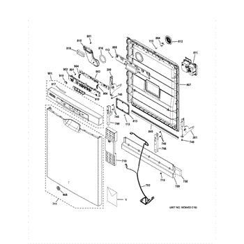 This Outer Door Service Assembly is an OEM part for GE dishwashers. It forms the external part of the dishwasher door, providing both a protective and aesthetic function. Ensuring that the door closes securely to prevent water leaks and maintain optimal operating conditions.