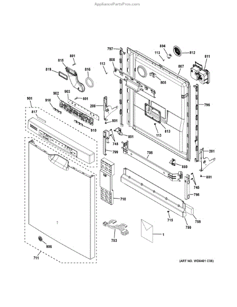 This Outer Door Service Assembly is an OEM part for GE dishwashers. It forms the external part of the dishwasher door, providing both a protective and aesthetic function. Ensuring that the door closes securely to prevent water leaks and maintain optimal operating conditions.