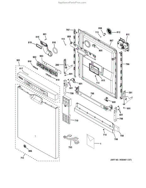 The Door Vent Seal is an OEM part for GE dishwashers. Located within the front dishwasher door, it functions to control moist air circulation and maintain humidity levels inside the wash chamber. Causes of a bad door vent seal can include cracking of the flexible seal material. Mineral or soap deposits may also compromise sealing integrity. Symptoms of a bad vent seal include: