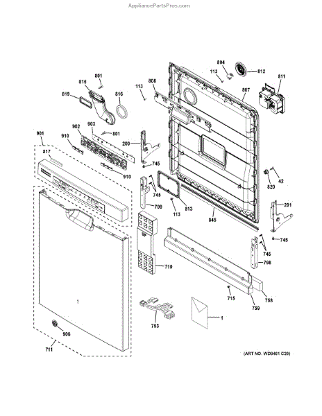 The Door Vent Seal is an OEM part for GE dishwashers. Located within the front dishwasher door, it functions to control moist air circulation and maintain humidity levels inside the wash chamber. Causes of a bad door vent seal can include cracking of the flexible seal material. Mineral or soap deposits may also compromise sealing integrity. Symptoms of a bad vent seal include: