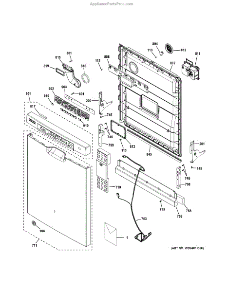 The Harness Assembly Door is an OEM part for GE dishwashers. It consists of wiring and connectors that facilitate electrical connections between various components in the dishwasher door. This harness ensures that signals and power are properly transmitted to components such as the control panel, latch, and dispenser.