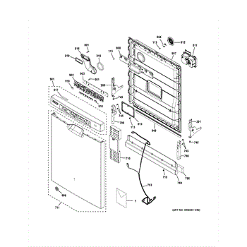 The Door Harness Assembly is an OEM replacement part for GE dishwashers. It is an integral wiring component that connects modules on the dishwasher door to the main control board. These include interactive elements like the latch, temperature probe, and door switch. Causes of failure can include cracked insulation, loose or severed connections, and pinched/chafed wires from repeated bending. Symptoms of a bad door harness include: