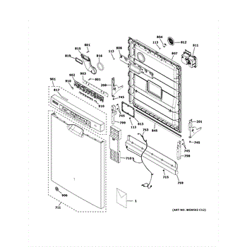 The Door Vent Seal is an OEM part for GE dishwashers. Located within the front dishwasher door, it functions to control moist air circulation and maintain humidity levels inside the wash chamber. Causes of a bad door vent seal can include cracking of the flexible seal material. Mineral or soap deposits may also compromise sealing integrity. Symptoms of a bad vent seal include: