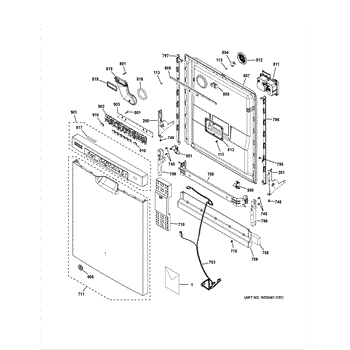 The Harness Assembly Door is an OEM part for GE dishwashers. It consists of wiring and connectors that facilitate electrical connections between various components in the dishwasher door. This harness ensures that signals and power are properly transmitted to components such as the control panel, latch, and dispenser.