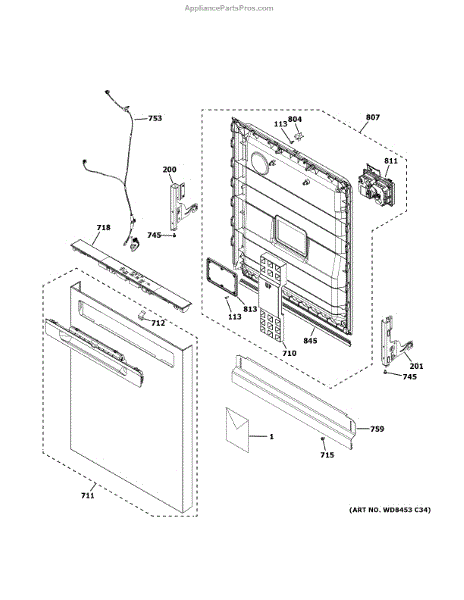 The Door Hinge Assembly Left is an OEM component specifically designed for GE dishwashers. This door hinge assembly is located on the left side of the dishwasher door and is responsible for securely and smoothly mounting the door while enabling its opening and closing motion.