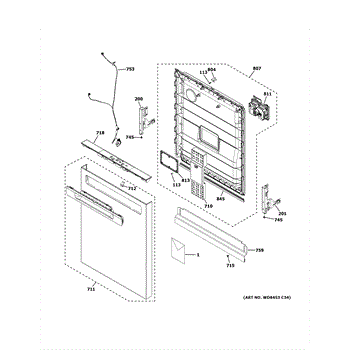 The Door Hinge Assembly Left is an OEM component specifically designed for GE dishwashers. This door hinge assembly is located on the left side of the dishwasher door and is responsible for securely and smoothly mounting the door while enabling its opening and closing motion.