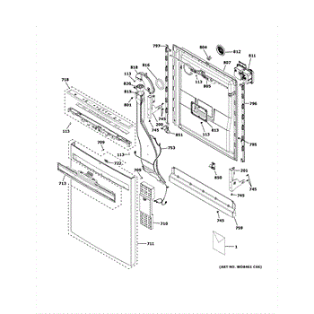 The Inner Door Panel is an OEM part for GE dishwashers. It serves as the inner lining of the dishwasher door, ensuring a watertight seal and supporting components like the detergent dispenser and vent assembly.