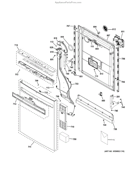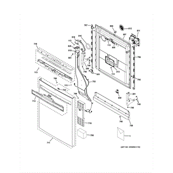The Inner Door Panel is an OEM part for GE dishwashers. It serves as the inner lining of the dishwasher door, ensuring a watertight seal and supporting components like the detergent dispenser and vent assembly.