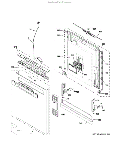 The Door Arm Hinge Assembly is an OEM component specifically designed for GE dishwashers. It is the mechanism responsible for securing the dishwasher door in place and facilitating smooth opening and closing motions. Reliable door hinges are essential for proper door alignment and a securely closed operation environment during cycles.