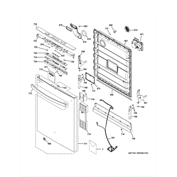 The Door Harness Assembly is an OEM replacement part for GE dishwashers. It is an integral wiring component that connects modules on the dishwasher door to the main control board. These include interactive elements like the latch, temperature probe, and door switch. Causes of failure can include cracked insulation, loose or severed connections, and pinched/chafed wires from repeated bending. Symptoms of a bad door harness include: