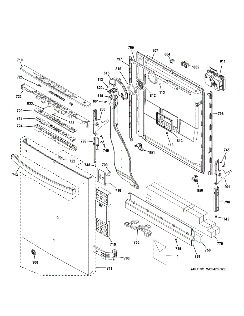 The Outer Door Assembly Kit is an OEM replacement part for GE dishwashers. It includes all of the key external door components needed for proper function, including the inner and outer door panels, sealing gaskets, locking mechanisms, and design elements. Causes of a bad outer door assembly can include wear and tear over time, especially to sealing gaskets which are prone to cracking. Higher humidity levels can accelerate this. Physical damage such as dents or cracks in the plastic panels will also necessitate replacement. Symptoms of a bad outer door assembly include: