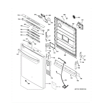 The Door Harness Assembly is an OEM replacement part for GE dishwashers. It is an integral wiring component that connects modules on the dishwasher door to the main control board. These include interactive elements like the latch, temperature probe, and door switch. Causes of failure can include cracked insulation, loose or severed connections, and pinched/chafed wires from repeated bending. Symptoms of a bad door harness include: