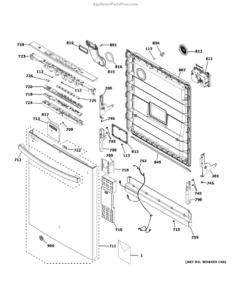 The Door Harness Assembly is an OEM replacement part for GE dishwashers. It is an integral wiring component that connects modules on the dishwasher door to the main control board. These include interactive elements like the latch, temperature probe, and door switch. Causes of failure can include cracked insulation, loose or severed connections, and pinched/chafed wires from repeated bending. Symptoms of a bad door harness include: