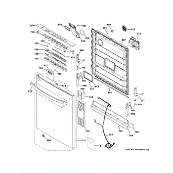 The Door Harness Assembly is an OEM replacement part for GE dishwashers. It is an integral wiring component that connects modules on the dishwasher door to the main control board. These include interactive elements like the latch, temperature probe, and door switch. Causes of failure can include cracked insulation, loose or severed connections, and pinched/chafed wires from repeated bending. Symptoms of a bad door harness include: