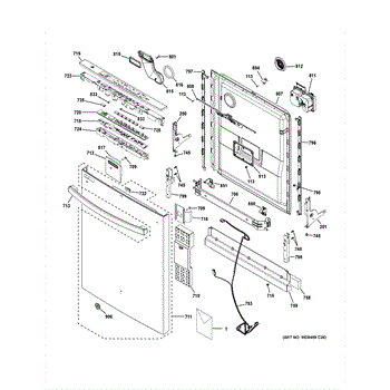 The Harness Assembly Door is an OEM part for GE dishwashers. It consists of wiring and connectors that facilitate electrical connections between various components in the dishwasher door. This harness ensures that signals and power are properly transmitted to components such as the control panel, latch, and dispenser.