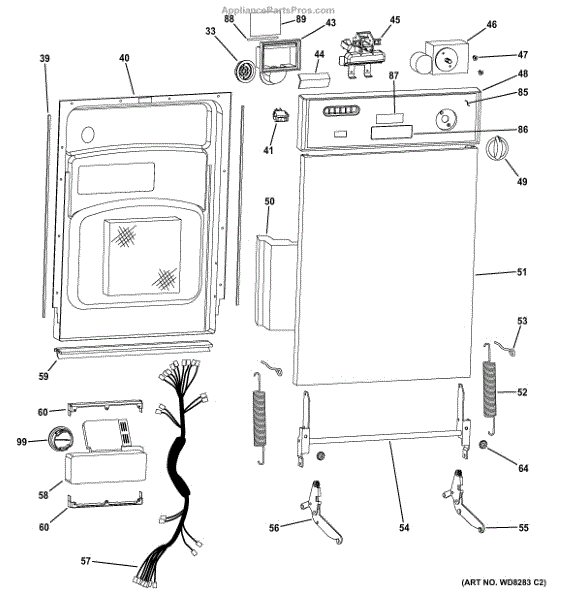 This dishwasher detergent dispenser assembly stores detergent and releases it at the correct time in the wash cycle to ensure consistent cleaning results. Replacing a worn dispenser restores reliable soap release and helps improve wash performance.