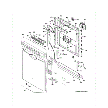 This Outer Door Service Assembly is an OEM part for GE dishwashers. It forms the external part of the dishwasher door, providing both a protective and aesthetic function. Ensuring that the door closes securely to prevent water leaks and maintain optimal operating conditions.