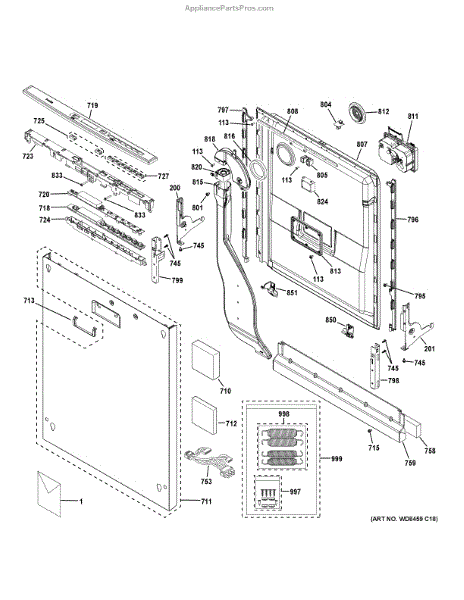 The Door Vent Seal is an OEM part for GE dishwashers. Located within the front dishwasher door, it functions to control moist air circulation and maintain humidity levels inside the wash chamber. Causes of a bad door vent seal can include cracking of the flexible seal material. Mineral or soap deposits may also compromise sealing integrity. Symptoms of a bad vent seal include: