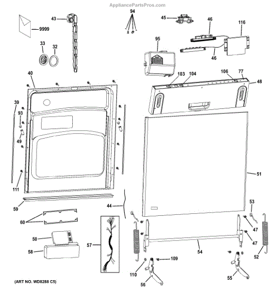 This is a door hinge spring that is used on dishwashers. This dishwasher door hinge spring prevents the dishwasher door from dropping open or slamming shut. It allows the movement to be controlled and smooth rather than abrupt and forceful. Each dishwasher unit has two springs at the bottom, one on each side.A new dishwasher door hinge spring may be needed if the dishwasher door is dropping open without any resistance or if it is slamming shut without any resistance. The springs provide tension to prevent these opening and closing concerns, so if that tension is missing, it is time to replace the springs on the dishwasher door.This is a genuine General Electric part and is an OEM part sourced directly from the manufacturer. It is sold individually. This specific dishwasher door hinge spring is compatible with dishwashers that are manufactured by the General Electric brand.