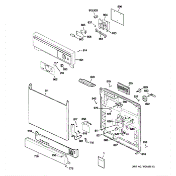 The Detergent cup cover is an OEM component for GE dishwashers. It serves to protect the detergent cup assembly while allowing for easy access. Made of durable plastic, the cover clicks securely into place during operation to prevent accidental opening.