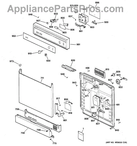 The Soap Dispenser Lever is an OEM part for GE dishwashers. It operates the soap dispenser door, releasing detergent into the dishwasher at the appropriate time during the wash cycle. This lever ensures that detergent is dispensed efficiently for optimal cleaning performance.