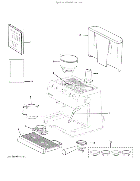 Parts for Ge P7CESAS6R1BB: Espresso Machine Parts