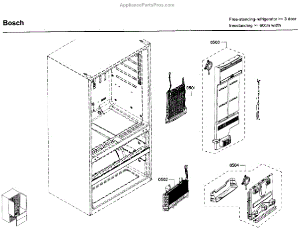 The Fan Cover is an OEM part for Bosch refrigerators. This part protects the fan blades while allowing air to circulate freely within the refrigerator. This part helps to maintain the correct airflow, which is crucial for the refrigerator’s cooling efficiency, ensuring that the temperature is evenly distributed throughout the unit. Causes of a bad Fan Cover can include physical damage such as cracks or breaks, which may result from accidental impacts during cleaning or maintenance. Symptoms of a bad Fan Cover include: