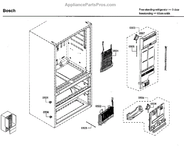 The Fan Cover is an OEM part for Bosch refrigerators. This part protects the fan blades while allowing air to circulate freely within the refrigerator. This part helps to maintain the correct airflow, which is crucial for the refrigerator’s cooling efficiency, ensuring that the temperature is evenly distributed throughout the unit. Causes of a bad Fan Cover can include physical damage such as cracks or breaks, which may result from accidental impacts during cleaning or maintenance. Symptoms of a bad Fan Cover include: