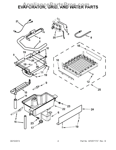 This water slide reservoir replaces the cracked or damaged reservoir that channels water to the dispenser/ice system, restoring a secure pathway for water and preventing leaks or loss of dispenser function. What it does: