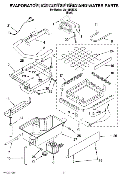 Parts for Maytag JIM158XBCX2: 02 - Evaporator, Ice Cutter Grid And Water Parts