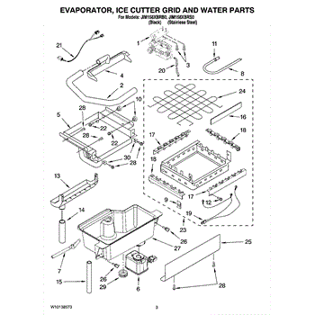 Parts for Maytag JIM158XBRB0: 02 - Evaporator, Ice Cutter Grid And Water Parts