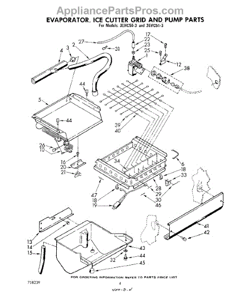 Parts for Whirlpool 3EHC51E: 04 - Evaporator, Ice Cutter Grid And Pump Parts