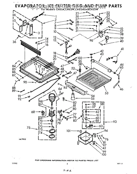 Parts for Whirlpool CHE5W: 02 - Evaporator, Ice Cutter Grid And Pump Parts